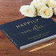 Dieses elegante, dunkelmarineblaue Gästebuch bietet Ihnen eine Auswahl an Goldfolie, Silber oder Rose. Die Titelseite hat den Satz "Happily Ever After" in einer Mischung aus einfacher moderner Typografie und einem stilvollen Drehbuch mit Swashes. Ihre Vornamen werden durch ein Herz verbunden, und Ihr Hochzeitstermin ist unten. Sie können den Titel auf der Wirbelsäule personalisieren und Ihr Lieblings-Verlobung-Foto auf der Rückseite hinzufügen.