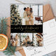 Élégante calligraphie Minimaliste Gold Foil Script Gold Black 4 Photo Collage Joyeux Noël Carte de vacances. Ce modèle festif, mimimaliste, fantasque de quatre (4) cartes de vacances photo présente un joli collage photo et dit "Joyeux Noël"! Le texte de salutation "Joyeux Noël" est écrit dans une belle main lettré tourbillonnant swash-tail type de police en or sur arrière - plan de couleur noire. À l'envers avec modèle texte de salutation avec un petit doodle de coeur sur blanc et un modèle photo horizontal. Jolie carte de voeux pour votre famille et vos amis pendant la période de Noël.
