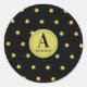 Elegant Gold & Black Star Pattern Monogram Runder Aufkleber