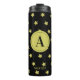 Elegant Gold & Black Star Pattern Monogram Thermosbecher