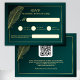 This elegant RSVP card features a deep green background with refined gold feather artwork and minimalist gold border detailing, creating a luxurious and timeless stationery design. The layout includes space for guest name entry, attendance confirmation options, number attending, and dietary requirement notes, making it ideal for weddings, anniversaries, formal dinners, engagement celebrations, gala events, birthday receptions, bridal showers, corporate banquets, and other sophisticated occasions. Its clean structure and premium color combination make it suitable for both personal and professional event stationery collections