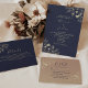 Elegant Gold Floral Navy Blue Wedding Einladung