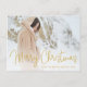 Mit dieser modernen Weihnachtspostkarte, die ein schlichtes Design mit den Worten "Frohe Weihnachten" in einem eleganten, dünnen Imitat goldenen Drehbuch, zusammen mit Ihrem Familiennamen und Jahr über Ihrem bevorzugten horizontalen Foto. Die Rückseite hat Ihre persönliche Nachricht und Ihre Rücksendeadresse für einfaches Mailen.