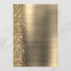This elegant modern wedding menu features a faux diamond glitter border on a gold faux brushed metal background. The customizable text combines white handwriting script and sans serif fonts. The gold brushed metal and glitter design is repeated on the reverse side.