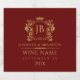 Elegantes, einfaches, mit Monogramm Weinetikett. Goldfarben Laurel Kranz mit Krone und individuellem Monogramm: Dunkelrot veränderbarer Hintergrund und anpassbare Textvorlage.