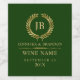 Elegant Gold Laurel Wreath On Green Weinetikett