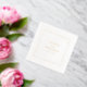 These wedding napkins feature a minimalist and elegant design with a clean, off-white background framed by a delicate gold border. The layout is centered around simple serif typography in a harmonious gold hue, creating an understated yet sophisticated look. Perfect for formal occasions, the design emphasizes clarity and timelessness, making it ideal for weddings that celebrate refined taste and simplicity.