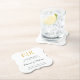 Elegante Save the Date Untersetzer mit Ihren zwei ersten Monogramm in Imitat Gold, innerhalb eines Randes, über einen weißen Hintergrund. Dieses elegante Design eignet sich hervorragend für eine feierliche Hochzeit.