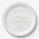 Serve your holiday treats in style with this festive paper plate featuring the phrase “Merry Christmas” in shimmering gold script. Perfect for Christmas parties, winter weddings, office celebrations, or family gatherings, this disposable plate combines elegance with convenience for your seasonal entertaining.
