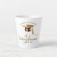 Elegant gold script monogram graduation mug featuring your initials in flowing calligraphy paired with a classic graduation cap illustration and refined typography for your name, school, and class year. Designed for graduates who want something polished and personal, this mug turns a daily routine into a reminder of everything you’ve accomplished. The clean white background highlights the gold details for a timeless look that works beautifully as a graduation gift or keepsake.