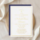 Elegant Gold Script Navy Blue First Communation Folieneinladung
