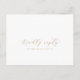 Cette élégante demande de chant en or RSVP carte postale est parfaite pour un mariage simple. Le design minimaliste or et blanc présente une typographie romantique avec style glamour moderne. Personnalisable dans n'importe quelle couleur. Gardez le design minimal et élégant, tel quel, ou personnalisez-le en ajoutant vos propres graphiques et artwork. Créez votre liste d'invités mariages et votre liste de chansons de piste de danse tout à la fois ! Cette carte postale de réponse mariage demande si les invités pourront assister à votre mariage, et aussi quelle chanson les amènera à danser.