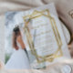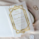 Diese Vintag inspirierte Hochzeitseinladung mit goldfarbenem Text auf weißem Hintergrund gerahmt durch ein geometrisches Deko-Design Vintager Kunst. (Die untere, separat verkaufte Kartenschicht ist in der folgenden Kollektion erhältlich.)