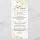 Ce beau menu présente une belle décoration avec du texte doré sur un arrière - plan blanc classique et des boucles et tourbillons en faux feuille doré dans les coins. Il y a des lettres de script fantaisie pour le titre et l'espace pour les noms du couple et la date du mariage. Conçu sur le produit de la carte de voeux standard de Zazzle, ce menu est disponible en téléchargement numérique, ce qui en fait le choix idéal pour la commande de dernières minutes! Merveilleuse façon d'ajouter un peu de style et de classe à votre réception de mariage!