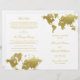 Les élégants programmes de cérémonies de mariage inspirés du voyage vintage présentent une carte du monde avec une apparence brillante de champagne métallique. Personnalisez le texte personnalisé pour votre fête de mariage, informations de cérémonie, et message de remerciement. Remarque : ces programmes de papier poids texte arrivent à plat et nécessitent un pliage pour être assemblés. Couleur blanc et fausse feuille d'or.