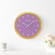 Eleganter goldener Rahmen und violette Wall-Uhr. Sunrise Text kann angepasst werden.