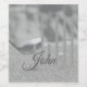 Elegantes graues Monogramm mit Initialen und Namen, ein tolles Geschenk für Golfliebhaber. Dieses Design für ihn bietet einen Golfball, der bald von einem Fahrer-Golfclub auf einem gepflegten Golfplatz getroffen werden wird. Das Design ist in Graustufen gehalten, sowohl das Bild als auch der gewohnte Text. Vor dem Bild sind benutzerdefinierte Monogramm-Initialen in einem weichen Grau, aber ein eleganter Sans Serif-Schriftart. An der Vorderseite dieses Hauses befindet sich Platz für einen Namen in einem dunkelgrauen. Dies ist ein besonderes Geschenk für einen Golfspieler Vater, Opa, Freund, Partner, Ehemann, Bruder oder als Geschenk für einen pensionierten Kollegen, der viel Golf spielen möchte.