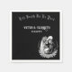 Mit diesen eleganten und makabren Servietten stärken Sie sich am gotischen Hochzeitstisch. Diese auffallenden schwarz-weißen Servietten zeigen eine wunderschön detaillierte Abbildung einer Skelettbräute und eines Bräutigams, gerahmt durch einen Kranz von Rose. Die Krönung des Designs ist das zeitlose Gelöbnis "Bis zum Tod macht uns Teil", das einen Ton ewiger Romantik absteckt. Ideal für eine gotische, alternative oder Halloween-Feier, sind sie ein unvergessliches Detail für Ihren Empfang. Personalisieren Sie sie mit Ihren Namen und Hochzeitsdatum unter dem Design, um einen einzigartigen Sake für Ihren besonderen Tag zu schaffen.