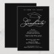 Ein Graduierungspapier und das Wort "Graduate" in einem eleganten weißen Skript PLUS den Namen und das Jahr Ihres Absolventen und Ihre Informationen über diese schwarzen Abschluss Party Einladungen. SEHEN SIE DIE GESAMTE SAMMLUNG von vorgefertigten Tellern, Papiertüten, Servietten, Gradcap-Tops und vieles mehr in unserem Shop.
