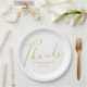 Klassische Graduierungsparty-Teller mit elegantem goldfarbigem Kalligrafieschrift und dem personalisierten Namen Ihres Absolventen auf weißem Hintergrund. Ideal für Abschlussfeiern, oder jeden besondere Anlass, wo Sie gewollt zu sagen, danke!