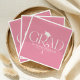 Celebrate your graduate with refined, modern style using these elegant graduation party napkins. Set against a cute pink background, the design features the word “GRAD” in a modern serif typeface, with a stylish graduation cap icon positioned above the “R.” The end of the “R” flows seamlessly into a dangling tassel that runs through the graduate’s name, school, and class year for a cohesive, high-end look.