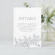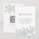 Elegant Gray Florals QR Code Wedding Details Begleitkarte