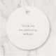 Elegante Hochzeitsfavoriten-Tags mit klassischem Design, mit dem Monogramm in einem Script-Schriftart und "Danke" in einem klassischen Serif-Schriftart.