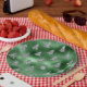 Elegant green and faux silver Christmas trees pattern were used to create this perfect design for your holiday table. Coordinating paper napkins are available. Simply lovely.