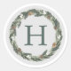 Elegant Green Grey Monogram Weihnachtskranz Runder Aufkleber