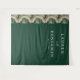 This elegant wedding backdrop features a sophisticated marbled design on the left, transitioning into a rich forest green background. The swirling cream and beige tones create an organic flow, complemented by clean, modern typography centered in white against the dark green. Perfect for adding a touch of understated elegance to your special day, this design combines minimalism with a calming mood, ideal for formal celebrations.