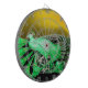 ELEGANT GREEN PEACOCK IN GELB DARTSCHEIBE