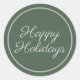 Eleganter, grüner "Happy Holidays" Klassischer Rundaufkleber mit Kalligraphieskripttext. Kontaktieren Sie uns für Hilfe bei der Anpassung oder um passende Produkte anzufordern.