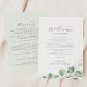 Diese eleganten Grün Hochzeitstitel und die Karten für die Tour sind perfekt für eine einfache Hochzeit. Das moderne und elegante Design besticht durch eine natürliche botanische Anordnung von Eukalyptus, Blätter und Pflanze mit einem subtilen, grün-grünen Aquarellwaschakzent. Auf der Vorderseite der Karte befindet sich ein Begrüßungsschreiben, auf der Rückseite der Karte befindet sich der Hochzeitstag. Diese Noten sind ideal für Hochzeiten in Urlaubsort und Begrüßungstaschen für Hotelgäste.