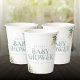 Eine elegante Babydusche-Papiertasse mit schick dustig blauer Typografie und hübschem botanischem Grün. Entwickelt von Thisisnotme©