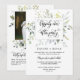 Diese Party Einladung ist glücklich, nach dem Party Hochzeitsfeier im Empfang mit einem eleganten, minimalistischen Stil mit Aquarellgrün-Blattwerk-Blätter, Rahmen-Arrangements und wunderschönen Kalligraphie-Schriftart und reinen und serifenlosen Typografie- auf weißem Hintergrund, was eine wunderbare Möglichkeit ist, Ihre Familie und Freunde darüber zu informieren, dass Sie verheiratet sind und es jetzt Zeit zum Party ist! Die Einfachheit dieses Designs fügt Ihrer Hochzeitsankündigung eine Touch Eleganz hinzu. Es funktioniert mit vielen Hochzeitsthemen und ist definitiv eine großartige Ergänzung zu Ihrer Hochzeit. Einfach Namen und Formulierungen in ein paar einfachen Schritten anpassen und die Einladungskarte mit Ihrem Foto der glücklichen Paar- und Party-Informationen und QR-Code mit Ihnen personalisieren, um Ihrer Einladung eine angenehme persönliche Touch zu geben. Bitte beachten Sie: Die eleganten Schriftzeichen "glücklich immer nach dem Party" und "Bitte schließen Sie sich uns an, um einen Empfang zu feiern" auf der FRONT der Einladung und "freundlich reagieren" auf der BACK der Einladung, zusammen mit den Aquarellblättern Eukalyptus Blätter Arrangements und anderen grafischen Kunstelementen wie Linien und Rechteck nicht bearbeitet, verändert, verschoben oder gelöscht werden können. Sie sind repariert. Wenn Sie die Farbe ändern müssen, können Sie die Einladungskarte anpassen. Sie können die Einladung anpassen und personalisieren, um Ihren Hochzeitsbedürfnissen gerecht zu werden. Klicken Sie einfach auf die Einladung. Sie können die Einladung ganz einfach als digitalen Download personalisieren und elektronisch versenden und mit Ihren Gästen über SMS, E-Mail oder Social Media teilen. Oder Sie können auch die Einladung bezüglich Ihrer Daten an Ihre Gäste schicken/schicken. Oder Sie erhalten beides - gedruckte Einladung und erhalten die Einladung in digitaler Form als Sofortdownload.