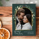 Dieses Design besticht durch einen modernen grünen Bogen mit einem zarten Goldrahmen aus Glitzer und goldenen Pinselstrichen mit einem senkrechten Foto aus Single. Um erweiterte Änderungen vorzunehmen, wählen Sie bitte unter 'Diese Vorlage personalisieren' die Option 'Weitere Anpassungen vornehmen'. Hier können Sie Textfelder, Farbe und Schriftart bearbeiten/hinzufügen.