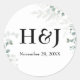 Elegant Greenery Monogramme und Datum Runder Aufkleber