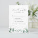 Diese elegante, grüne Song Anfrage RSVP Karte ist perfekt für eine einfache Hochzeit. Das moderne und elegante Design besticht durch eine natürliche botanische Anordnung von Eukalyptus, Blätter und Pflanze mit einem subtilen, grün-grünen Aquarellwaschakzent. Bauen Sie Ihre Hochzeitsgast-Liste und Ihre Tanzfläche-Liedliste auf einmal! Diese Hochzeitskarte frage den Gästen bequem, ob sie an Ihrer Hochzeit teilnehmen können, und auch, welches Lied sie zum Tanzen bringen wird.