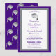 An elegant graduation ceremony card with gray cap and purple background.