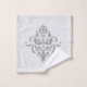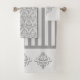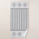 Serviette gris et gris clair, simple et sobre, avec une bande et un motif damassé.