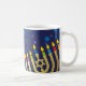 Celebrate the Festival of Lights in timeless style with this elegant Happy Hanukkah mug. Featuring a radiant gold menorah with colorful candles against a deep blue starry background, it captures the beauty and warmth of the Hanukkah spirit.