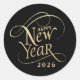 Elegant Happy New Year Black Gold Runder Aufkleber