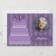 Cet élégant design présente un arrière - plan rayé lilas monochromatique complété par un gâteau d'anniversaire coordonné avec un dessus de gâteau "90e anniversaire" et des perles. Téléchargez votre propre photo dans le cadre de style victorien et personnalisez-la avec votre nom. Le revers de ce design populaire est le même jeu de couleurs avec beaucoup de texte personnalisable pour vous permettre d'ajouter vos informations de partie.VEUILLEZ NOTER : Tous les articles de ce magasin sont protégés par le droit d'auteur et ne peuvent être copiés ou redistribués de quelque manière que ce soit. Pour toute question sur ce design ou d'autres, ou si vous avez besoin d'aide pour le placement de photos, la personnalisation, la sélection de couleurs ou les commandes spéciales, veuillez utiliser la fonction d'envoi de messages jointe à ce magasin et nous serons heureux de vous aider