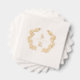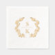 Serviettes mariages monogrammées élégantes dans une feuille d'or et design blanc avec un monogramme de couronne de laurier et d'élégantes polices classiques. Serviettes mariages en germe de laurier avec un monogramme vert estampillé en feuille d'or sur blanc. Serviettes mariages en feuille d'or monogramme avec un monogramme en couronne de laurier classique mais unique avec deux initiales pour apporter une touche personnalisée à votre élégante réception de mariage.