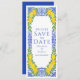 Lemon theme wedding save the date featuring illustrations of lemons, Mediterranean-inspired frame. Personalize by adding names, date, time, and other details. This lemon wedding save the date is perfect for summer weddings and Mediterranean-themed events.