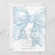 Diese elegante Oversized Bow Baby Shower Invitation besticht durch einen auffallend hellblauen Bogen, der die Bühne des Zentrums übernimmt und fast das gesamte Design abdeckt. Der Bogen macht eine verfeinerte Aussage, ergänzt durch die einfache "Baby Shower" oben in einer Mischung aus weich grauem handgeschriebenem Skript und klassischen Serif-Schriftart. Der hellblaue Hintergrund mit subtilen cremefarbenen Akzenten fügt eine moderne, raffinierte Touch hinzu - perfekt für eine Babydusche oder für eine Mutter, die blauer Liebe ist. Die Mischung aus klassischer Serif und anmutiger Schriftzypografie bietet ein stilvolles, elegantes Ambiente. Feiern Sie die Mama-to-be mit diesem modischen Design, ideal für einen schicken Babyduschbrunch oder eine trendige Ansammlung. Sie können die Farben, Schriftart und das Layout vollständig an das jeweilige Veranstaltungsthema anpassen. Der Rücken ist mit weißer Oberfläche links, um ein minimalistisches Aussehen zu erhalten, und kann auf Wunsch weiter personalisiert werden. Dieses vielseitige Design eignet sich für jede Jahreszeit oder Umgebung, egal ob Sie ein elegantes Innenfest oder ein charmantes Gartenhotel beherbergen. Diese Einladung ist als gedruckte Einladung oder als digitale Datei zum Herunterladen für einfaches E-Mailing oder Lokaldruck erhältlich und stellt eine atemberaubende Erklärung für Ihren besonderen Tag dar.