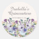Elegant Lilac Blue Floral Quinceñera Name Datum Runder Aufkleber