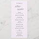 Modernes Hochzeitsprogramm mit einem einfachen und minimalen Design mit Ihren Namen und den Kopfzeilen auf der Rückseite in einem zeitgenössischen handgeschriebenen Skript. Die Farbpalette ist lavender / lila und kann im Design-Editing-Tool geändert werden. Dieses zeitgenössische Design funktioniert für jeden Hochzeitsstil.