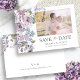 Mit diesem rett-the-date-Ausweis, der ein zartes Seitenbukett aus handbemalten Aquarelllilaks in einem traumhaften Lavendel, lila und blau mit üppiger Vegetation bietet, können Sie Ihre Hochzeit mit zeitloser Eleganz feiern. Die Vorderseite hebt Ihr Foto in der Verlobung wunderbar hervor und macht es zu einem persönlichen und herzlichen Zuhause für Ihre Gäste. Auf der Rückseite, eine raffinierte Monografie und Ihre Hochzeitswebsite sorgen dafür, dass alle wichtigen Details leicht zugänglich sind. Passen Sie den Wortlaut, den Schriftart und die Größe an, um ihn individuell zu gestalten. Es ist ein perfekter Weg, um Spannung und Set für Ihren besonderen Tag zu schaffen.