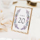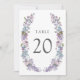 Die wunderschön gestalteten Tischnummern mit einem handbemalten Aquarellkranz aus Lilakfarben in traumhaften Lavendeltönen, lila und blau, mit üppiger Vegetation. Der elegante Blumenrahmen ergänzt mühelos ein romantisches und raffiniertes Hochzeitstil und sorgt dafür, dass sich jeder Tisch nahtlos in Ihr Dekor einfügt. Vollständig anpassbar, können Sie den Wortlaut, den Stil und die Größe des Schriftartes an Ihre Hochzeitsvision anpassen. Es ist ein idealer Weg, um Ihre Gäste zu führen, während Sie Ihrem Empfang eine raffinierte Touch mit Blumen hinzufügen.